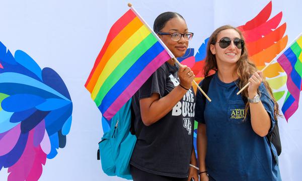 UCF LGBTQ+ Services hosted the LGBTQ+ Spirit Day Thursday to promote unity. Students were able to learn how to be an ally on the patio of the Student Union while taking pictures by rainbow-colored wings, grabbing a smoothie and talking to members of LGBTQ+ services. The event, held from 1 p.m. to 3 p.m., took a stand against bullying and suicide by supporting LGBTQ+ youth and educating the public.